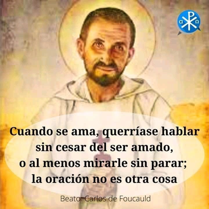 Zoals twee mensen die van elkaar houden soms niets hoeven te zeggen, maar eenvoudigweg samen zijn, zo is gebed voor Foucauld: blijven bij God, kijken naar Hem, en je laten kijken.