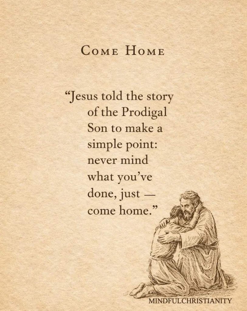 “Jezus vertelde het verhaal van de Verloren Zoon om één eenvoudige boodschap duidelijk te maken: wat je ook hebt gedaan — kom gewoon thuis.”[Lucas 15:11-32]