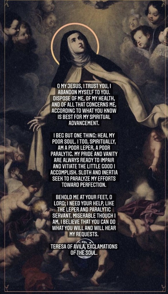 Teresa’s woorden zijn een eerlijke, bijna ontwapenende belijdenis van menselijke kwetsbaarheid. Ze spreekt niet vanuit wanhoop, maar vanuit een diepe waarheid: dat de ziel zichzelf niet kan genezen zonder de aanraking van God.
