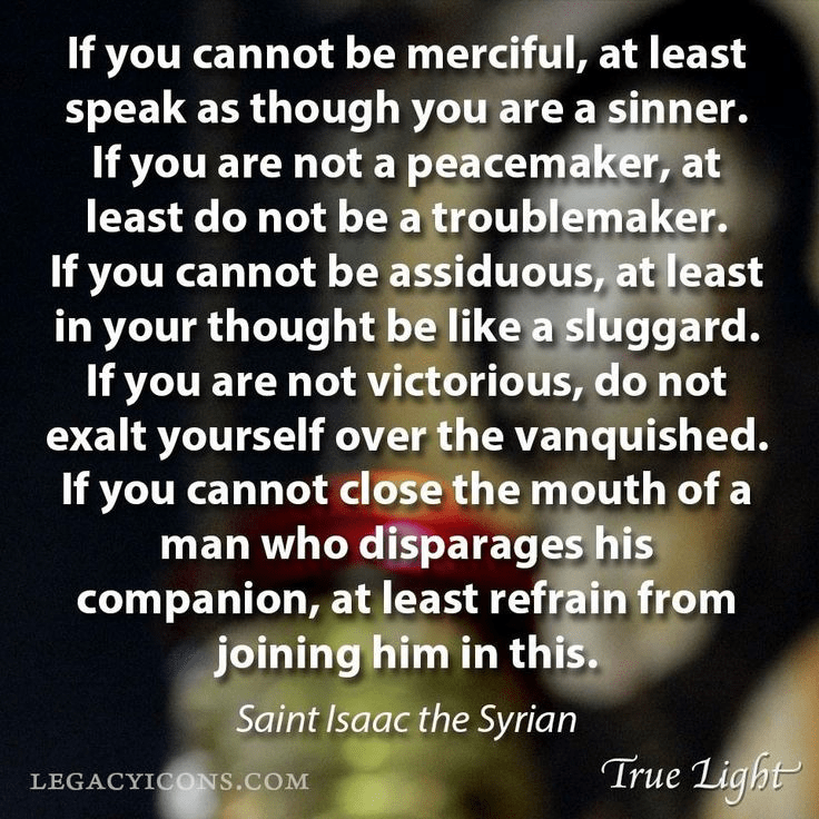 “Als je niet genadig kunt zijn, spreek dan tenminste alsof je een zondaar bent. Als je geen vredestichter bent, wees dan tenminste geen onruststoker. Als je de mond van een man die zijn metgezel kleinerend behandelt niet kunt sluiten, onthoud je er dan tenminste van om je hierbij aan te sluiten.”