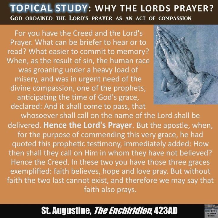 De heilige Augustinus zegt dat God ons het Onze Vader in mededogen heeft gegeven, als een genade om ons te helpen de ellende van de zonde die we ondergaan te dragen.