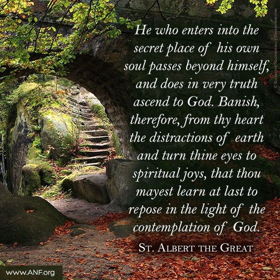 Hij die de geheime plaats van zijn eigen ziel binnengaat, overstijgt zichzelf en stijgt in werkelijkheid op naar God. Verban daarom de afleidingen van de aarde uit uw hart en richt uw ogen op geestelijke vreugde, zodat u eindelijk mag leren rusten in het licht van de contemplatie van God.