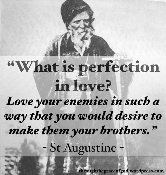 Want zo had Hij lief, Die aan het kruis hing en zei: ‘Vader, vergeef het hun, want ze weten niet wat ze doen.’” (Lukas 23: 34). St. Augustinus van Hippo, Preken over I John, I.9.