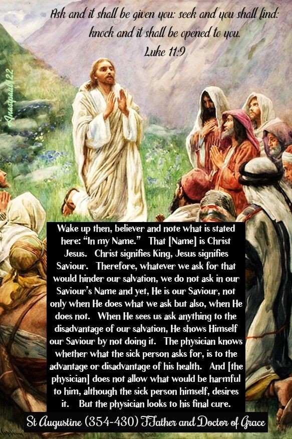 Word dan wakker, gelovige en let op wat hier staat: “In mijn Naam.” Die [Naam] is Christus Jezus. Christus betekent Koning, Jezus betekent Redder. Daarom, wat we ook vragen dat onze redding zou belemmeren, we vragen niet in de Naam van onze Heiland en toch is Hij onze Redder, niet alleen wanneer Hij doet wat wij vragen, maar ook wanneer Hij het niet doet. Als Hij ziet dat wij iets vragen ten nadele van onze zaligheid, toont Hij Zich onze Redder door het niet te doen. De arts weet of wat de zieke vraagt, in het voordeel of in het nadeel van zijn gezondheid is. En [de arts] laat niet toe wat schadelijk voor hem zou zijn, hoewel de zieke het zelf wenst. Maar de arts kijkt uit naar zijn uiteindelijke genezing.