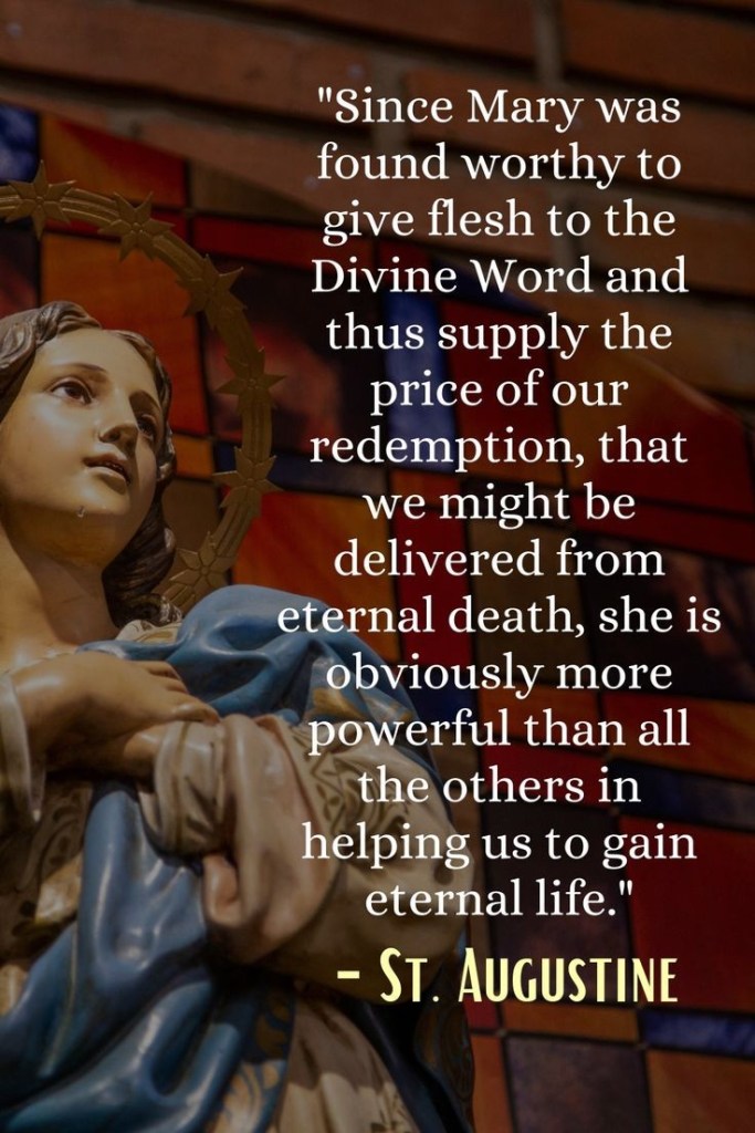 “Aangezien Maria waardig werd bevonden om vlees te geven aan het Goddelijk Woord en zo de prijs voor onze verlossing te betalen, zodat wij van de eeuwige dood verlost zouden worden, is zij duidelijk machtiger dan alle anderen om ons te helpen het eeuwige leven te verwerven.”