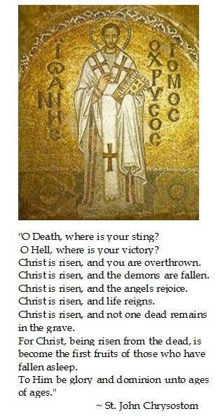 jWij allen zullen vroeg of laat voor het oordeel van God staan en ons moeten afvragen of we in staat waren de hele wereld – gelovigen en ongelovigen, goeden en slechten – lief te hebben met de opofferende, gekruisigde, allesoverwinnende liefde waarmee God ons liefheeft. Moge de Heer ons onoverwinnelijke moed, triomfantelijk geloof en vreugdevolle liefde schenken, opdat het koninkrijk waarvoor God mens werd, gevestigd zal worden, opdat wij werkelijk godvruchtig zullen worden, opdat onze aarde inderdaad de hemel zal worden waar liefde, triomfantelijke liefde, leeft en heerst. Christus is verrezen!