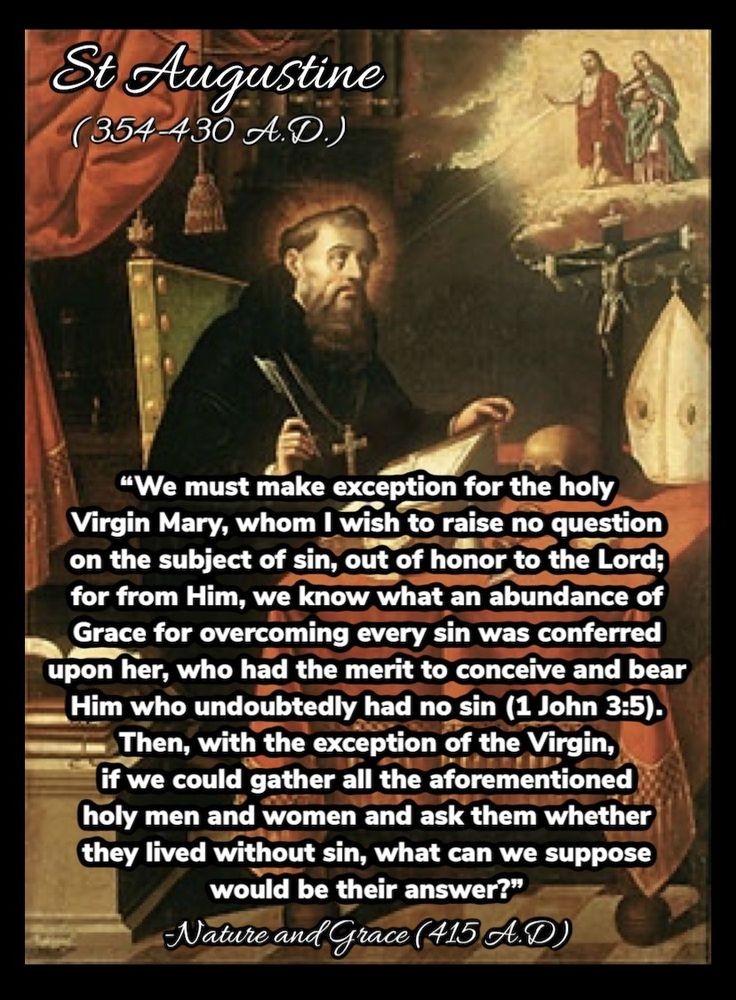 Uit eerbied voor de Heer wil ik geen enkele vraag stellen over de Heilige Maagd Maria wanneer het onderwerp van zonden ter sprake komt, want wij weten dat haar een overvloed aan genade werd geschonken om elke zonde te overwinnen. Zij had immers de verdienste om Hem te ontvangen en te baren—Hem die zonder enige twijfel geen zonde had (1 Johannes 3:5). Maar als we, met uitzondering van de Maagd Maria, alle heilige mannen en vrouwen zouden verzamelen die eerder genoemd zijn, en hen vragen of ze zonder zonde hebben geleefd, wat denken we dan dat hun antwoord zou zijn?