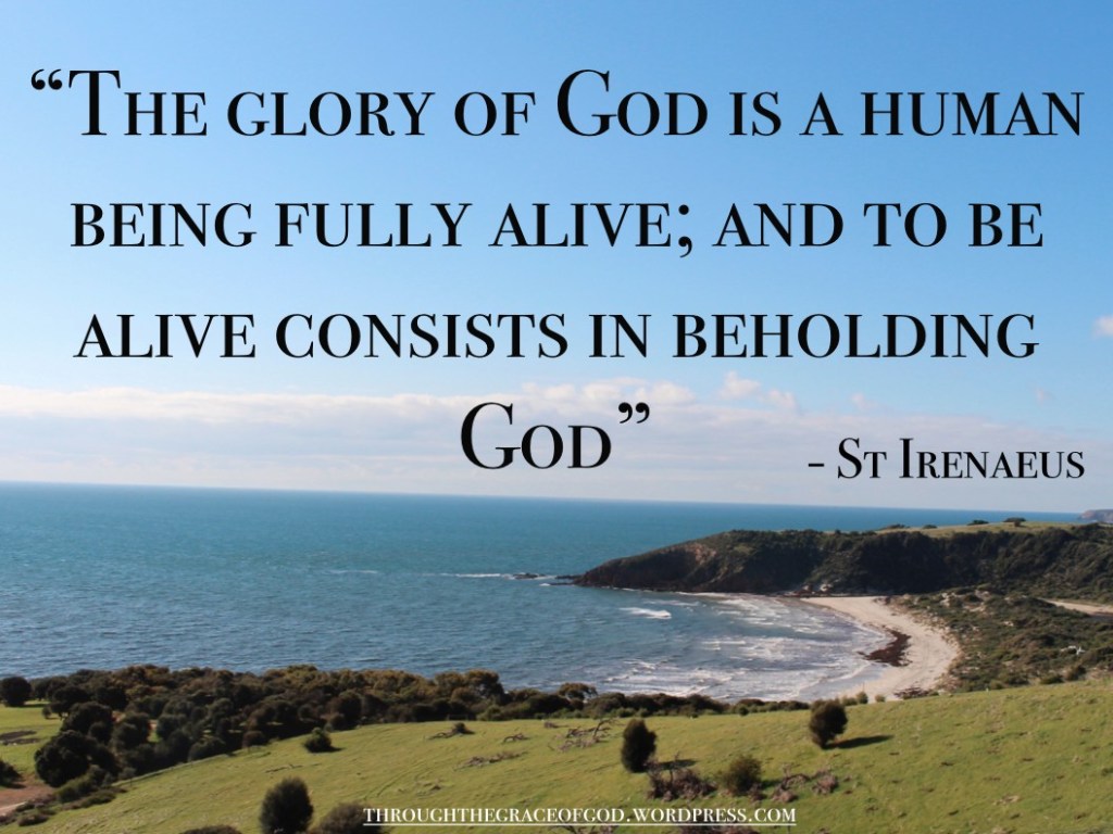 De glorie van God is een mens die volledig leeft; en zijn bestaat beleeft in het aanschouwen van God”.