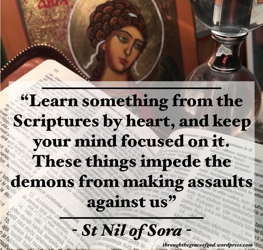 “Leer iets uit de Schrift uit je hoofd en houd je geest erop gericht. Deze dingen verhinderen dat de demonen ons aanvallen.”