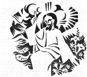 Indien het landschap een lichte grens trekt tussen het hier beneden en het hierboven, de vier kronen van de bomen van de olijfberg (symbool van vrede)steken er juist bovenuit en tonen de natuur die deelheeft aan de cosmische liturgie : God richt zich naar de wereld, en de wereld gaat haar Koning tegemoet.