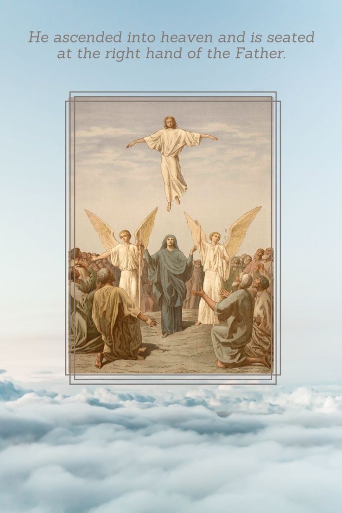 Na Zijn opstanding uit de dood verscheen Jezus aan de mensen gedurende een periode van veertig dagen, waarna Hij “werd opgenomen in de hemel en ging zitten aan de rechterhand van God” (Mc 16,19; zie ook Lc 24,50 en Handelingen 1,9-11) .