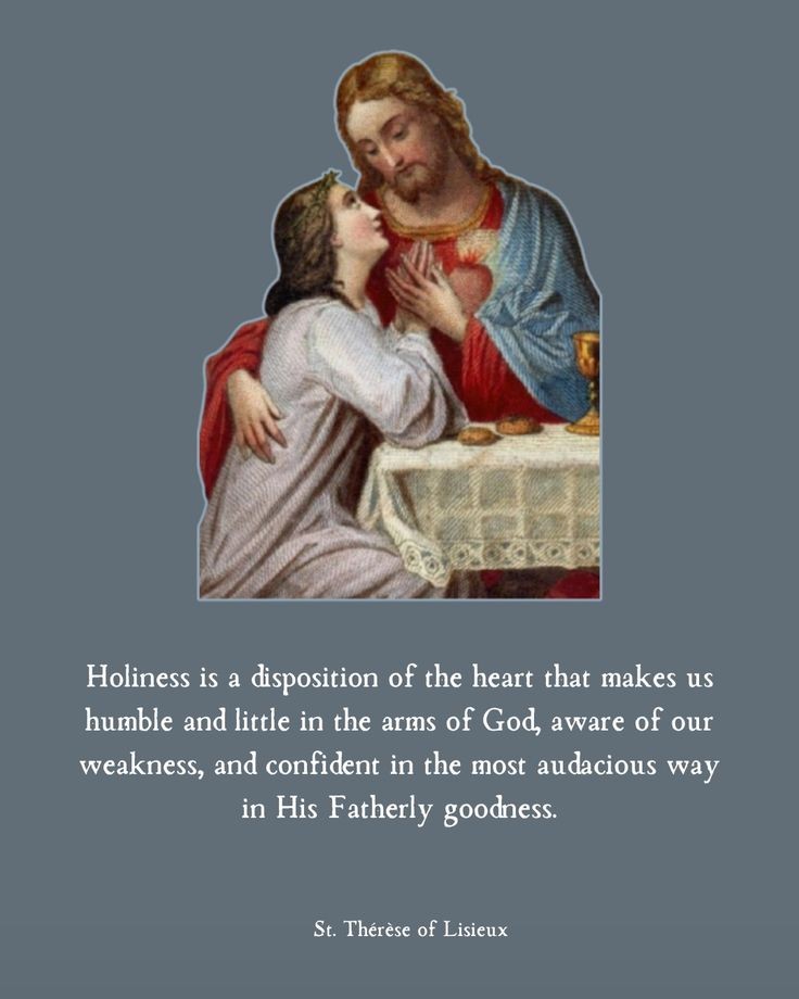 “Heiligheid is een houding van het hart die ons nederig en klein maakt in de armen van God, ons bewust maakt van onze zwakte, en ons op de meest gedurfde manier vertrouwen geeft in Zijn vaderlijke goedheid.”