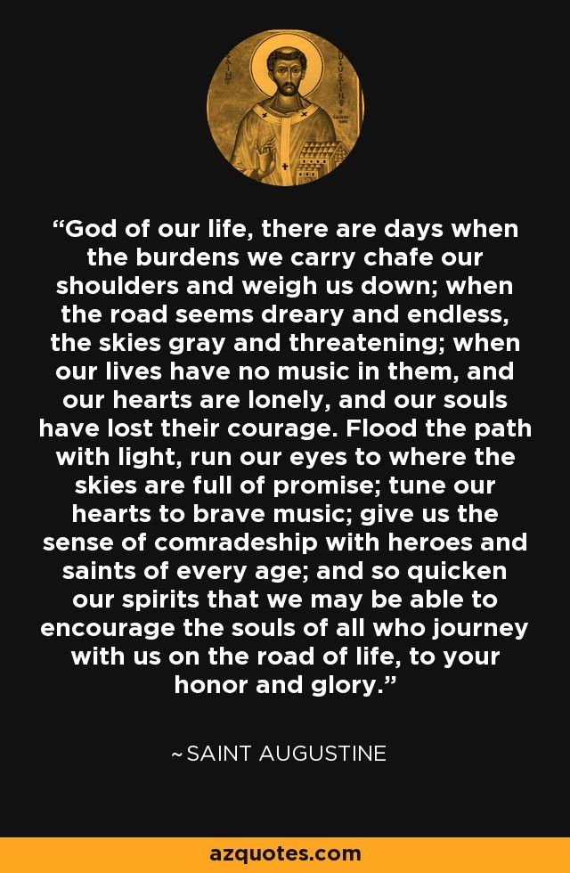 “Onze harten zijn gemaakt voor U, o Heer, en ze zullen nooit rusten totdat ze in U rusten.”