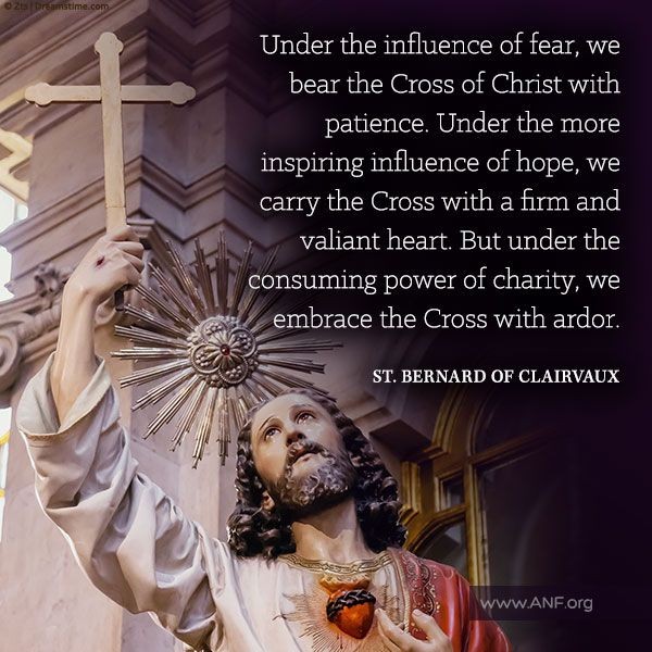 “Onder invloed van angst dragen we het kruis van Christus met geduld. Onder de meer inspirerende invloed van hoop dragen we het kruis met een vastberaden en moedig hart. Maar onder de allesomvattende kracht van naastenliefde omarmen we het kruis met vurigheid.”