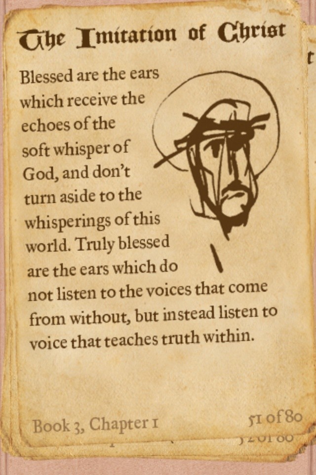 [Dit fragment komt uit De Navolging van Christus (Boek 3, Hoofdstuk 1), een klassiek spiritueel werk. Het benadrukt het belang van innerlijke stilte en het luisteren naar de stem van God in plaats van naar wereldse invloeden.