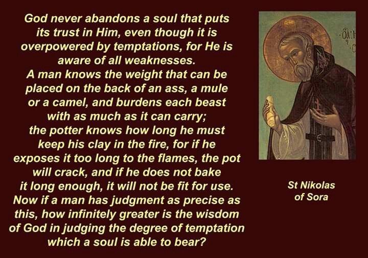 [Nikolas van Sora is waarschijnlijk een verwarring met Nilus van Sora (ook bekend als Nil Sorsky), een invloedrijke Russische monnik, theoloog en spiritueel schrijver uit de 15e eeuw.