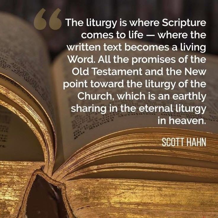 “De liturgie is waar de Schrift tot leven komt – waar de geschreven tekst een levend Woord wordt. Alle beloften van het Oude Testament en het Nieuwe wijzen naar de liturgie van de Kerk, die een aardse deelname is aan de eeuwige liturgie in de hemel.”
