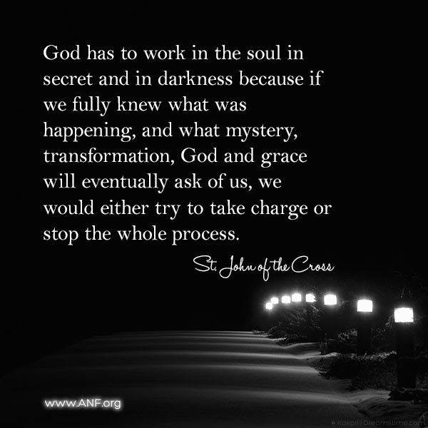 “God moet in het geheim en in duisternis in de ziel werken, omdat als we volledig wisten wat er gebeurde, en welke mysterie, transformatie, God en genade uiteindelijk van ons zouden vragen, we zouden proberen de leiding te nemen of het hele proces te stoppen.”