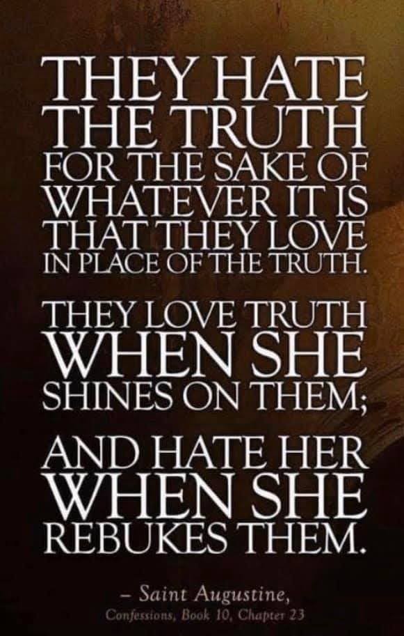 “Zij haten de waarheid omwille van wat zij in plaats van de waarheid liefhebben. Zij houden van de waarheid wanneer zij op hen schijnt, maar haten haar wanneer zij hen terechtwijst.”