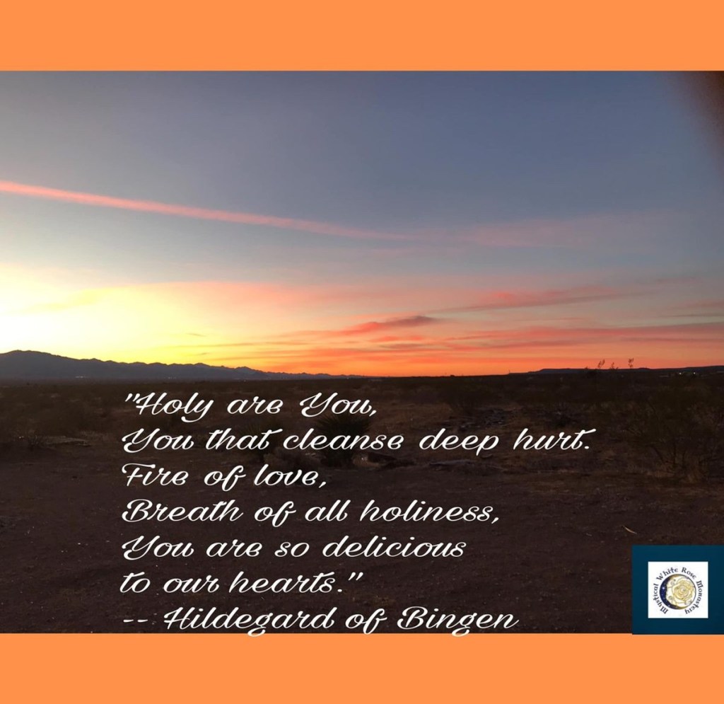 De tekst roept de luisteraar op zich te verbinden met het goddelijke licht — een terugkerend motief in haar visioenen en muziek.