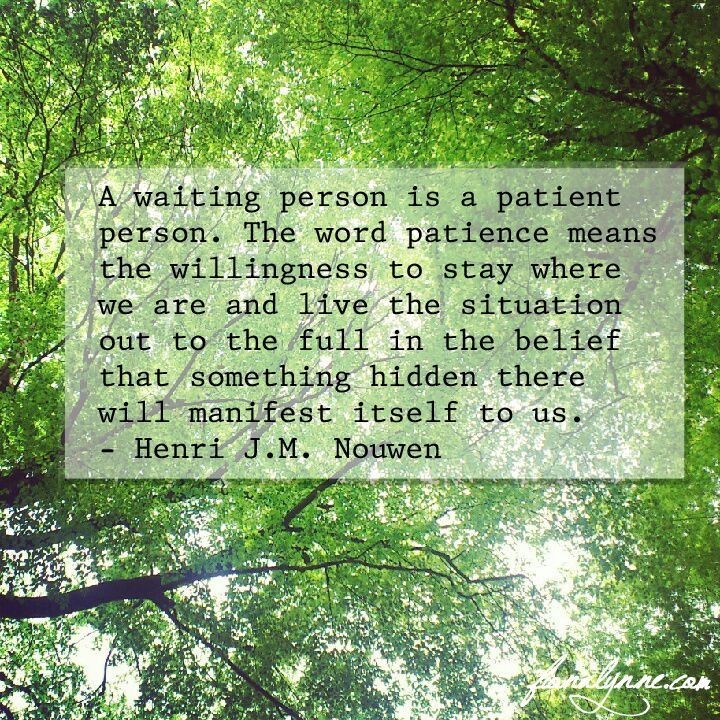 “Een wachtend persoon is een geduldig persoon. Het woord geduld betekent de bereidheid om te blijven waar we zijn en de situatie ten volle te beleven in de overtuiging dat iets verborgen daar zich aan ons zal openbaren.”