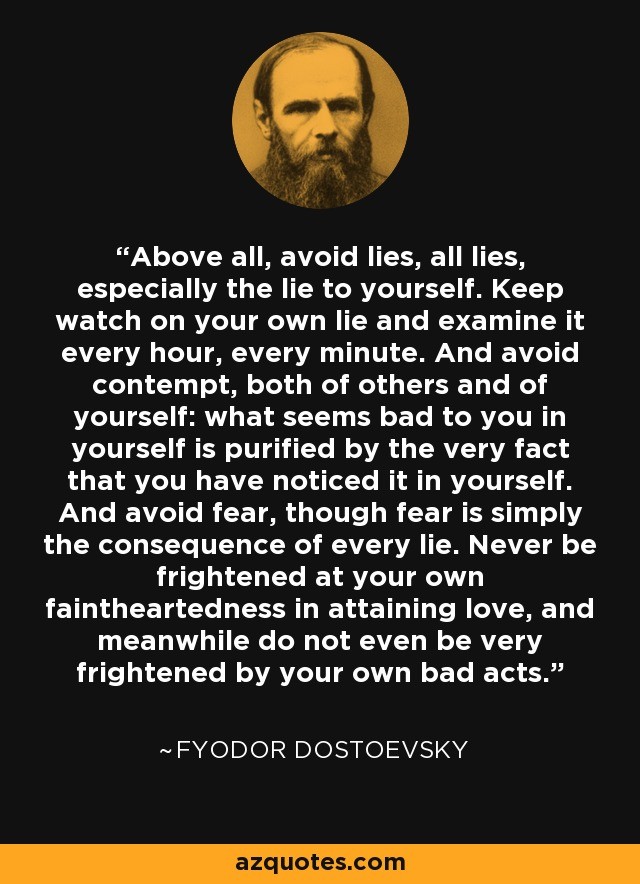 Dostojevski roept op tot volledige eerlijkheid, vooral tegenover jezelf.
