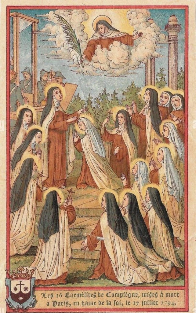 Tijdens de Franse Revolutie, in de bloedige periode die bekendstaat als de Terreur (1793–1794), werden zestien karmelietessen uit het klooster van Compiègne gearresteerd en op 17 juli 1794 in Parijs geëxecuteerd onder de guillotine.