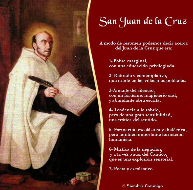 Wat mij bijzonder raakt is punt 6: “Mística de la negación, y a la vez autor del Cántico, que es una explosión sensorial.” Dit toont hoe zijn weg van innerlijke leegte niet leidde tot kilte, maar tot een vurige liefdeservaring met God. Zijn Cántico espiritual is geen ontsnapping aan de wereld, maar een doordrenking ervan met goddelijke aanwezigheid.