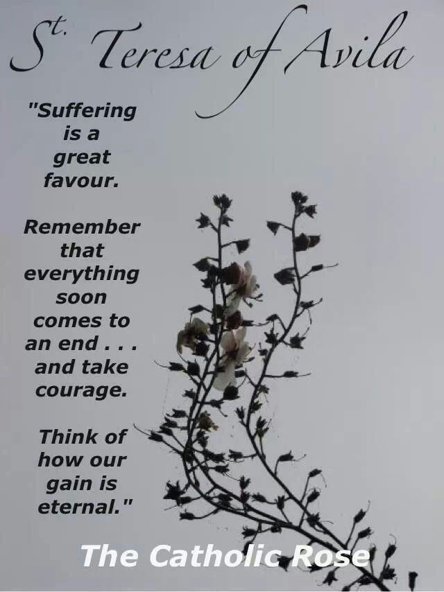“Lijden is een grote gunst. Herinner je dat alles spoedig tot een einde komt… en vat moed. Denk eraan dat onze winst eeuwig is.”