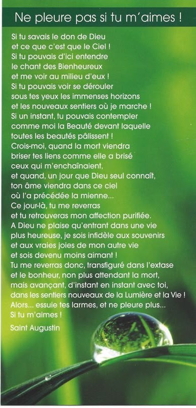Moge God ervoor zorgen dat je niet bedroefd bent wanneer je binnengaat in het leven en de meest zuivere liefde weer ontmoet.