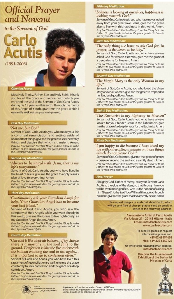 Noveen tot de Dienaar Gods Carlo Acutis : (de vertaling is een ietwat ingekorteversie)