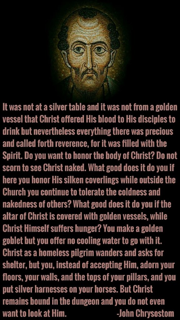 “Wat je ziet is het brood en de kelk; dat is wat je eigen ogen je vertellen. Maar wat je geloof je verplicht te aanvaarden, is dat het Brood het Lichaam van Christus IS en de Kelk het Bloed van Christus IS.”