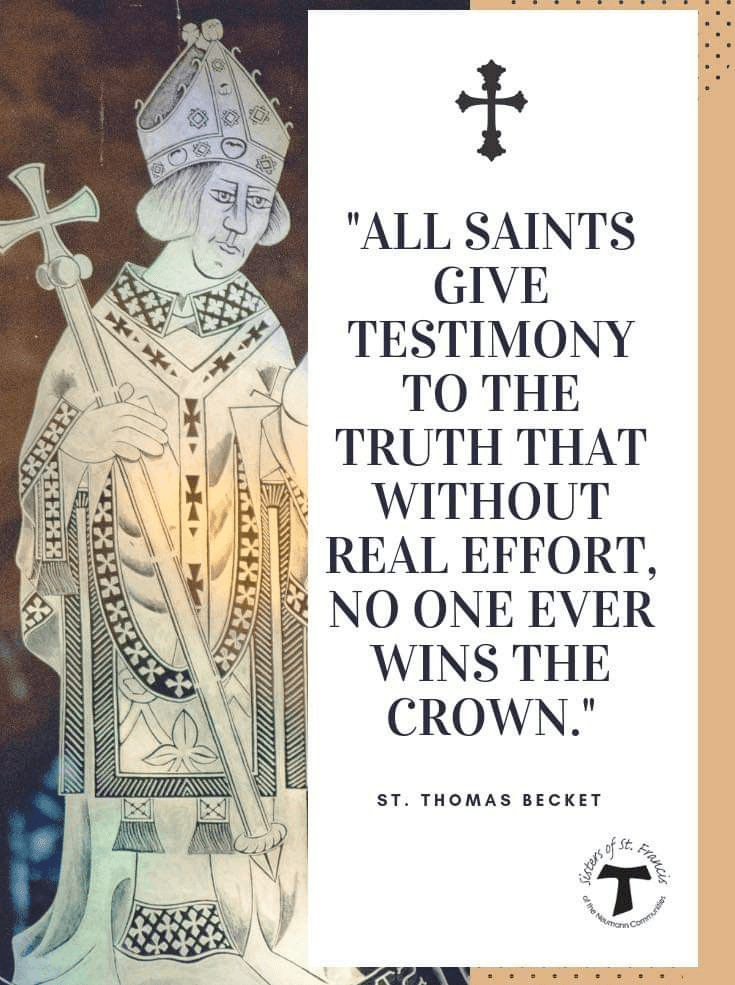 Deze uitspraak van St. Thomas Becket is een krachtige herinnering aan de spirituele realiteit dat heiligheid en innerlijke groei niet vanzelf komen. De “kroon” symboliseert hier de uiteindelijke beloning—de vereniging met God, de hemel, of de voltooiing van een heilig leven. Becket benadrukt dat inzet, strijd en volharding essentieel zijn. Heiligen zijn geen mensen die toevallig goed waren; ze zijn mensen die gekozen hebben om goed te zijn, vaak tegen de stroom in, onder druk, en met offers.