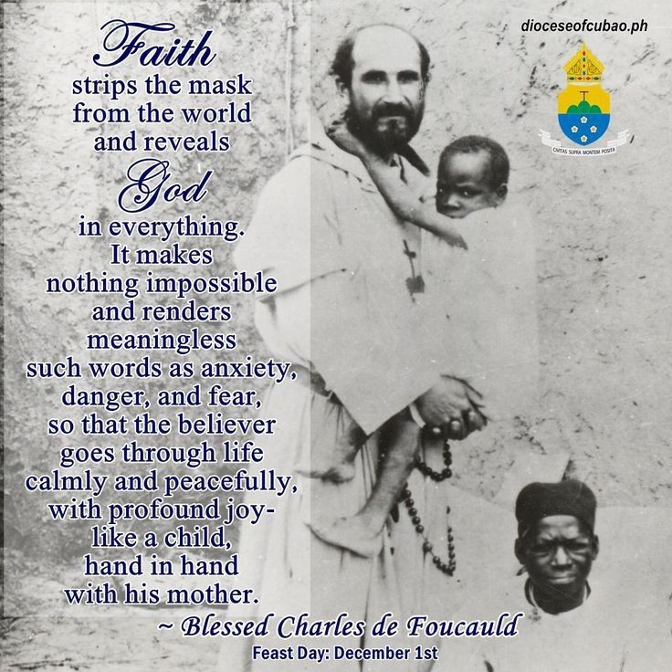 “Het geloof rukt de masker van de wereld af en onthult God in alles. Het maakt niets onmogelijk en maakt woorden als bezorgdheid, gevaar en angst zinloos, zodat de gelovige kalm en vredig door het leven gaat, met diepe vreugde—zoals een kind, hand in hand met zijn moeder.”