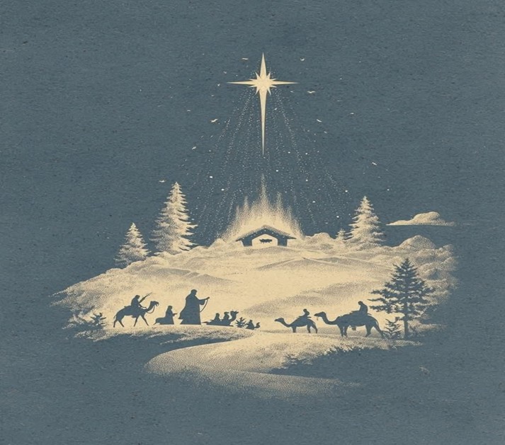 De ster boven de stal herinnert ons eraan dat zelfs in duisternis een licht schijnt. Dat licht is Christus — geboren uit liefde, gekomen om ons leven te geven dat verder reikt dan de dood.