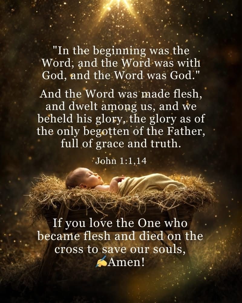 Johannes 1:1,14 Als je houdt van Degene die vlees werd en stierf aan het kruis om onze zielen te redden,