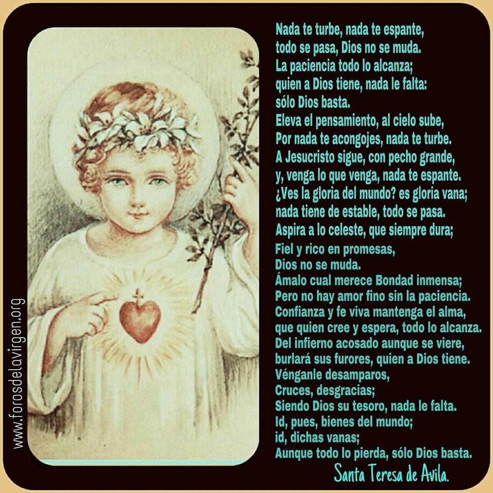 Niets moet je verontrusten, niets moet je angst aanjagen, alles gaat voorbij, God verandert niet. Geduld bereikt alles; wie God bezit, ontbreekt niets: alleen God is genoeg.