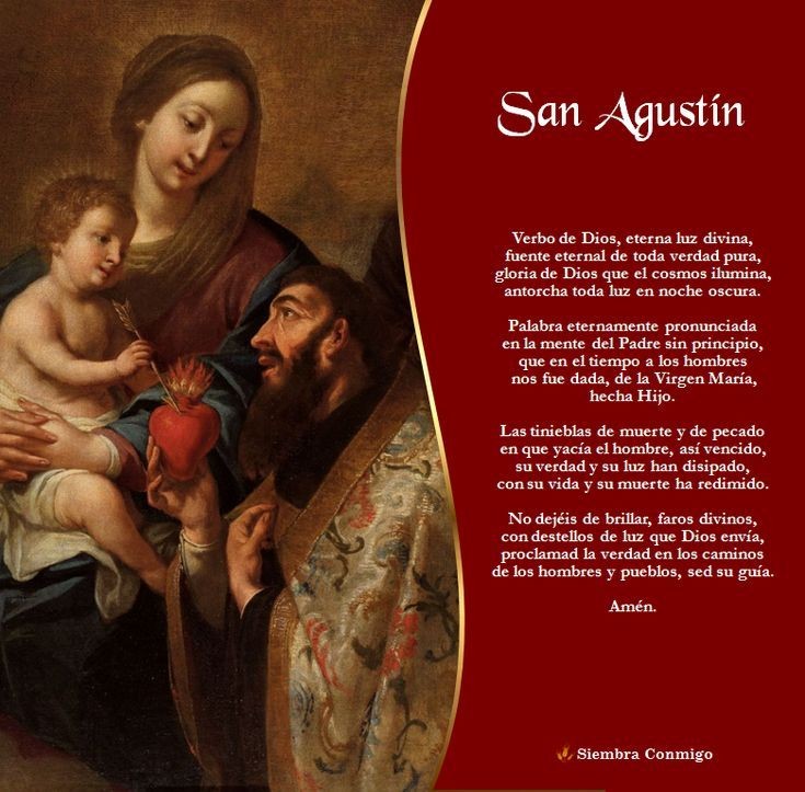 Deze gebedstekst is een lofzang op Christus als het eeuwige Woord van God, geïnspireerd door de theologie van Sint Augustinus. Het beeld van het Woord dat in de eeuwigheid bij de Vader bestaat en in de tijd mens wordt via Maria, weerspiegelt Augustinus’ diepe besef van de incarnatie als licht in de duisternis van de wereld. De vurige hartstocht waarmee hij de waarheid van Christus omarmt — zoals afgebeeld in het schilderij waar hij het brandende hart ontvangt — is hier verwoord in poëtische strofes die zowel mystiek als missionair zijn: het licht moet niet alleen ontvangen, maar ook verkondigd worden.