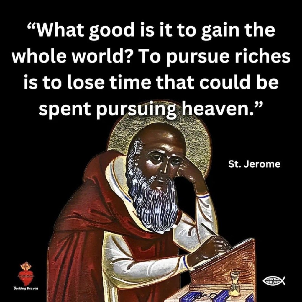 Deze uitspraak van St. Hieronymus is een krachtige herinnering aan de vergankelijkheid van aardse bezittingen en de eeuwige waarde van het geestelijke leven. In een wereld die ons voortdurend uitnodigt om meer te bezitten, meer te bereiken, en meer te consumeren, klinkt zijn stem als een profetisch tegengeluid: het ware doel van ons leven ligt niet in het vergaren van rijkdom, maar in het zoeken naar God.