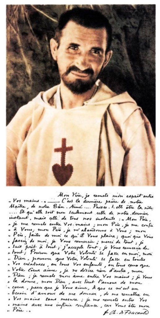 Dit gebed is een van de meest kenmerkende teksten van Charles de Foucauld: een totale, liefdevolle overgave aan God, niet uit fatalisme, maar uit vertrouwen.