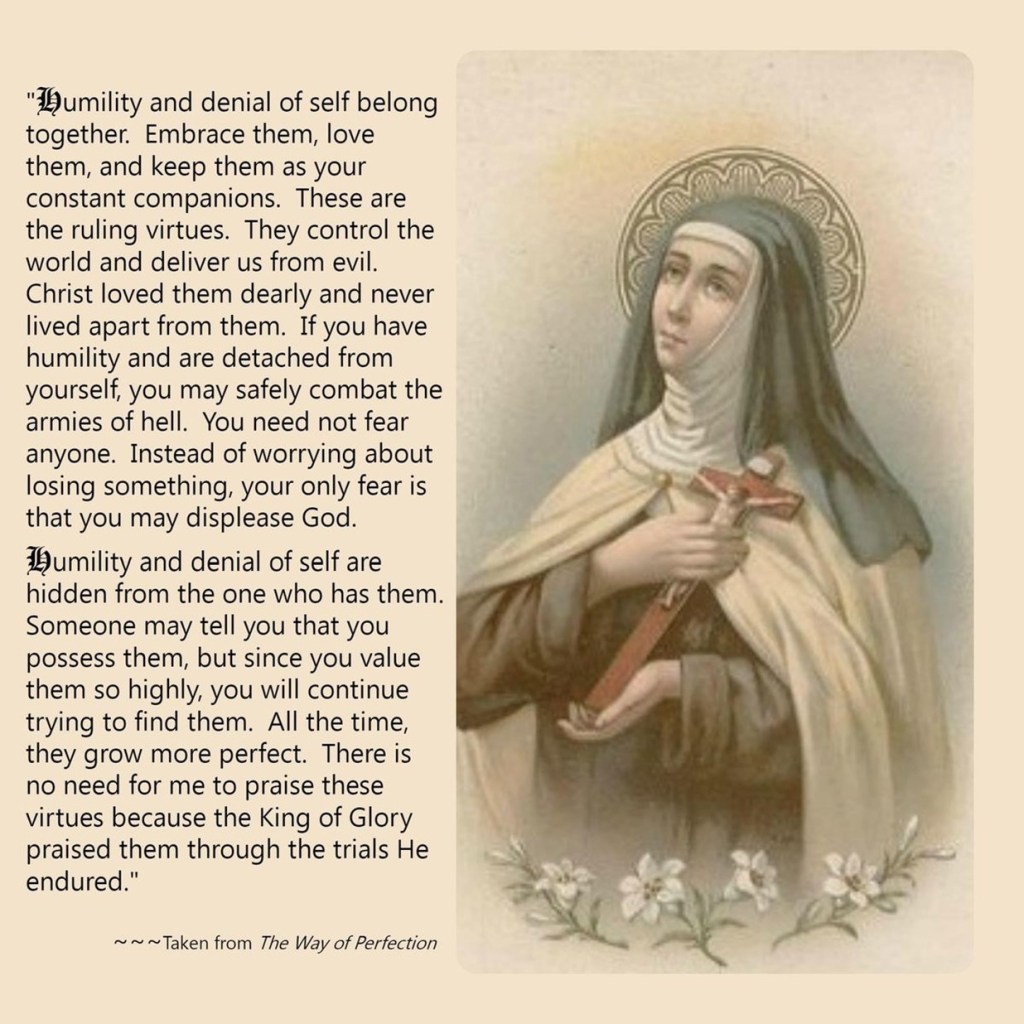 Wat Teresa hier beschrijft, is een paradox die diep in de christelijke spiritualiteit zit: de grootste deugden zijn juist die welke zich verbergen. Nederigheid en zelfverloochening zijn geen prestaties die je kunt meten of tonen; ze groeien in de stilte van het hart, vaak zonder dat je het zelf merkt.