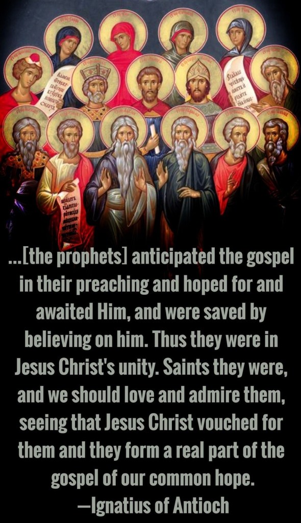 De profeten leefden vóór de menswording, maar niet buiten Christus. Zij “anticipeerden het evangelie”: hun woorden, hun hoop, hun lijden en hun trouw waren al een beweging naar Hem toe. Ignatius ziet hen als levende schakels in één grote keten van verwachting, waarin Christus zowel het begin als het einde is.