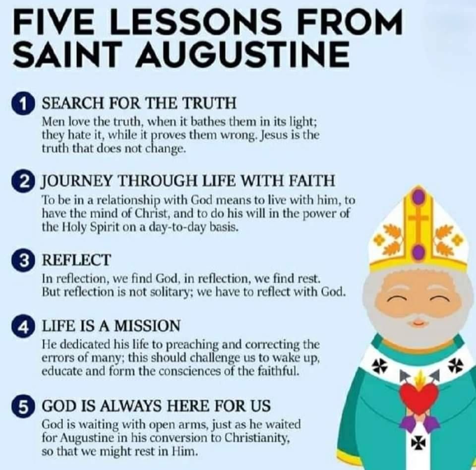 5. God is altijd bij ons God wacht met open armen, zoals Hij ook op Augustinus wachtte bij zijn bekering, opdat wij onze rust in Hem zouden vinden.