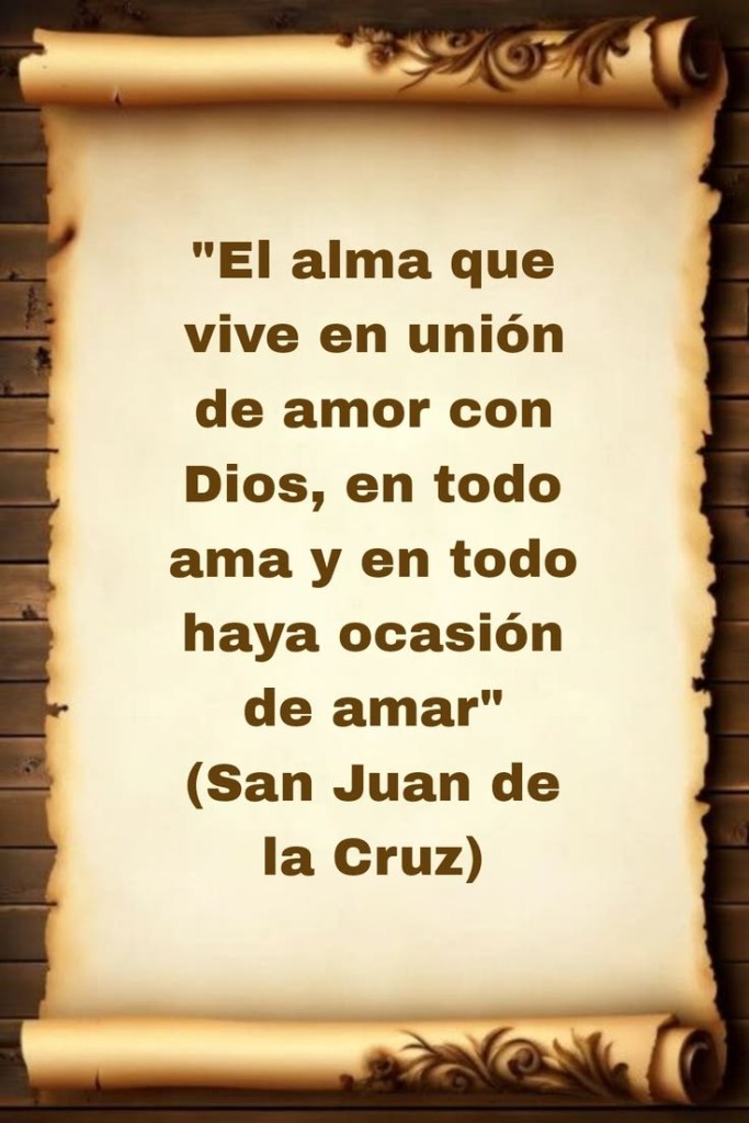 Deze tekst ademt de spiritualiteit van de afgebeelde heilige, Sint-Jan van het Kruis (San Juan de la Cruz), een van de grootste mystici uit de geschiedenis.