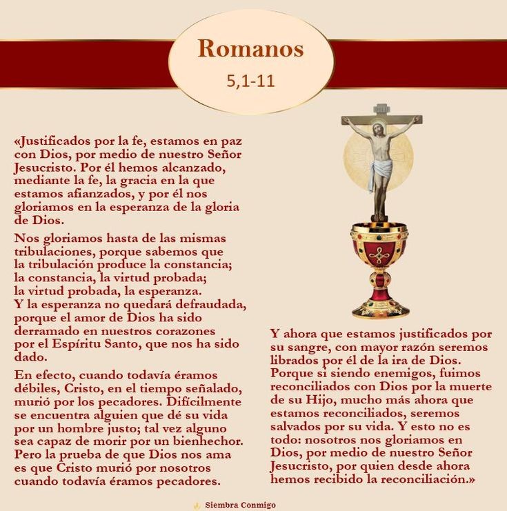 Voor een rechtvaardig mens zal iemand nauwelijks zijn leven geven; misschien durft iemand wel te sterven voor een weldoener. Maar God bewijst zijn liefde voor ons juist hierdoor: dat Christus voor ons gestorven is toen wij nog zondaars waren.Nu wij door zijn bloed gerechtvaardigd zijn, zullen wij des te zekerder door Hem worden gered van de toorn. Want als wij, toen wij nog vijanden waren, met God verzoend zijn door de dood van zijn Zoon, hoeveel te meer zullen wij, nu wij verzoend zijn, worden gered door zijn leven. En niet alleen dat: wij roemen in God door Jezus Christus, onze Heer, door wie wij nu de verzoening hebben ontvangen.”