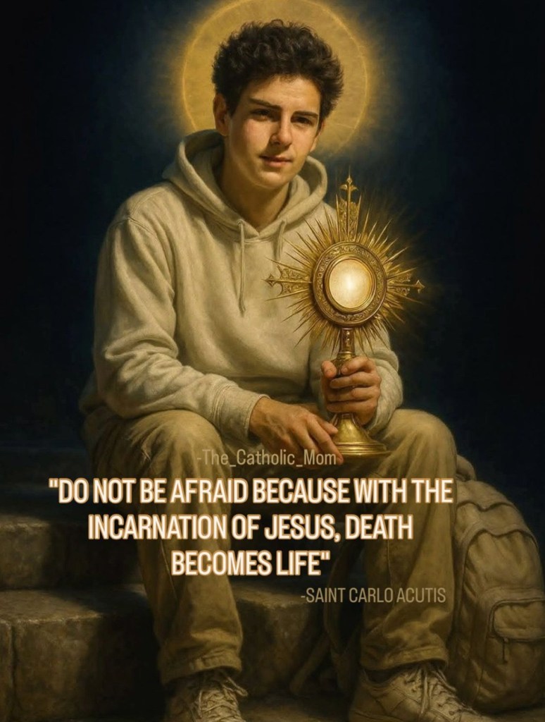 Laat ons, zoals de heilige Carlo Acutis, leven vanuit het vertrouwen dat Gij de dood hebt omgevormd tot leven. Maak ons hart ontvankelijk voor Uw aanwezigheid, in de Eucharistie, in de stilte, in de mensen om ons heen.