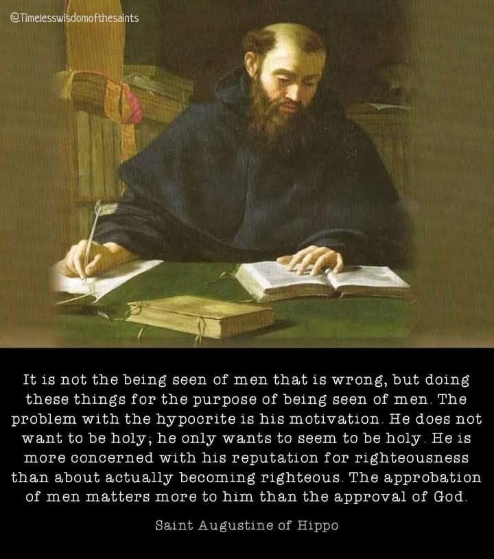 Voor Augustinus is heiligheid geen uiterlijk project maar een innerlijke omvorming. Schijnheiligheid is niet dat iemand gezien wordt, maar dat iemand wil gezien worden.